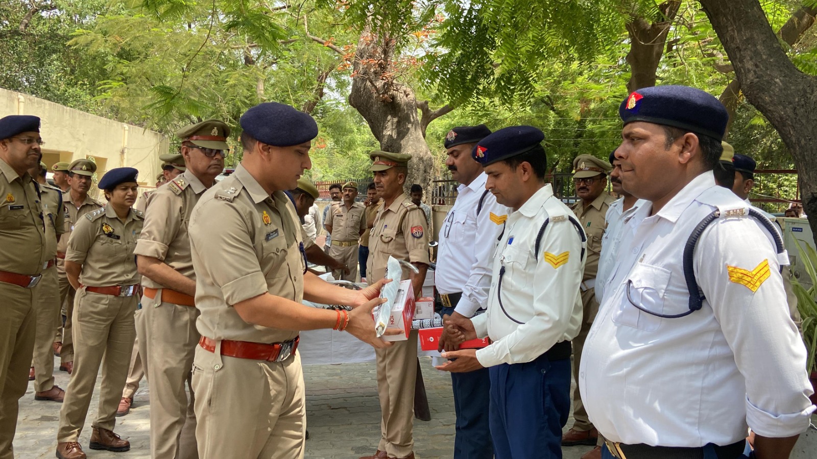: ट्रैफिक पुलिसकर्मियों को गर्मी से बचाने के लिए पानी की बोतल और छाते दिए