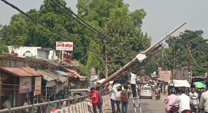: ओवरब्रिज पर बिजली का पोल गिरने से रुका ट्रैफिक, गनीमत रही बड़ी दुर्घटना नहीं हुई