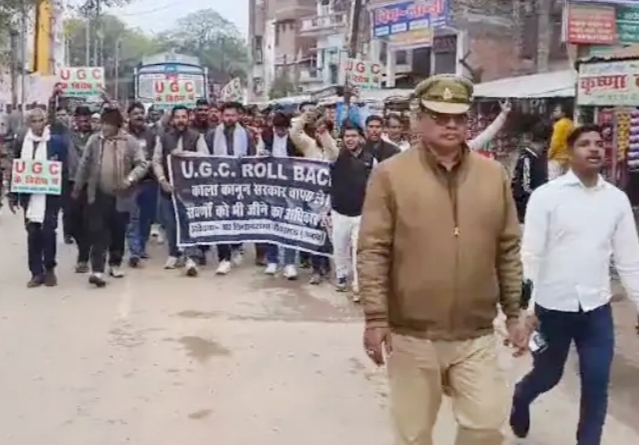 उन्नाव। बांगरमऊ में बुधवार को यूजीसी कानून के विरोध में सवर्ण समाज के लोगों ने खुलकर नाराज़गी जताई। बड़ी संख्या में लोग तिकोनिया पार्क में जुटे और सरकार के खिलाफ नारे लगाए। हाथों में तख्तियां और बैनर लिए प्रदर्शनकारी कानून को तुरंत वापस लेने की मांग कर रहे थे। तिकोनिया पार्क से शुरू हुआ यह विरोध मार्च जुलूस के रूप में तहसील परिसर तक पहुंचा। पूरे रास्ते प्रदर्शनकारी यूजीसी कानून के खिलाफ आवाज बुलंद करते रहे। प्रदर्शन पूरी तरह शांतिपूर्ण रहा, लेकिन लोगों के तेवरों से साफ था कि समाज में इस मुद्दे को लेकर गहरा असंतोष है। किसी भी तरह की अव्यवस्था न हो, इसके लिए पुलिस प्रशासन ने पूरे रूट पर पर्याप्त सुरक्षा व्यवस्था की थी। तहसील पहुंचकर प्रदर्शनकारियों ने उपजिलाधिकारी ब्रजमोहन शुक्ला को ज्ञापन सौंपा। ज्ञापन के जरिए सरकार से मांग की गई कि यूजीसी कानून को तत्काल प्रभाव से वापस लिया जाए। सवर्ण समाज के प्रतिनिधियों ने कहा कि यदि सरकार ने इस मांग को गंभीरता से नहीं लिया, तो आंदोलन को चरणबद्ध तरीके से और तेज किया जाएगा। उनका कहना था कि यह विरोध सिर्फ बांगरमऊ तक सीमित नहीं रहेगा, बल्कि जिले और प्रदेश स्तर तक फैलाया जाएगा। प्रदर्शनकारियों का आरोप है कि यूजीसी कानून सवर्ण समाज के अधिकारों को कमजोर करता है और इससे सामाजिक असंतुलन पैदा हो रहा है। उनका कहना है कि सरकार बिना सभी वर्गों से बातचीत किए ऐसे फैसले ले रही है, जिससे समाज में नाराजगी बढ़ रही है। वक्ताओं ने जोर देकर कहा कि किसी भी कानून को लागू करने से पहले सभी पक्षों की राय लेना जरूरी है, ताकि समाज में टकराव की स्थिति न बने। प्रदर्शन के दौरान वक्ताओं ने सरकार से संवाद का रास्ता अपनाने और यूजीसी कानून पर दोबारा विचार करने की अपील की। उन्होंने कहा कि अगर समय रहते इस मुद्दे पर गंभीरता नहीं दिखाई गई, तो आने वाले दिनों में विरोध और व्यापक रूप ले सकता है।