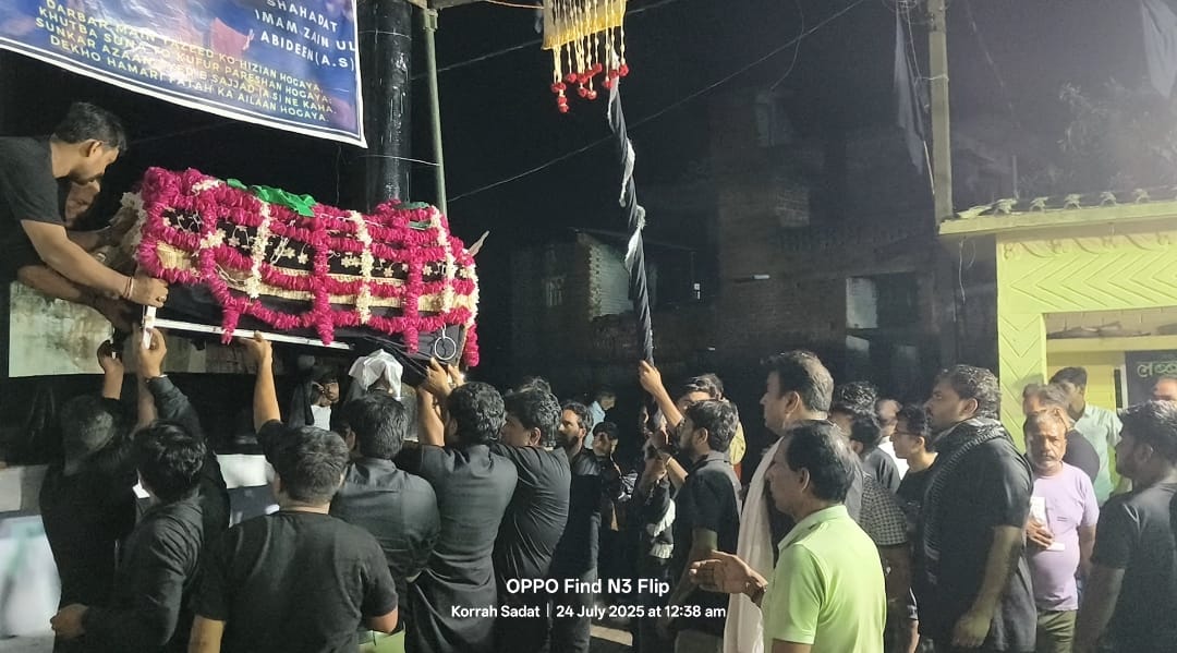 : कोर्रा सादात में इमाम सज्जाद के ताबूत में सारी रात हुई शब्बेदारी,लब्बैक या हुसैन की सदाओं के सदाओं के साथ होता रहा मातम!
