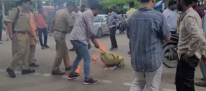 : उन्नाव में एबीवीपी का प्रदर्शन, ओपी राजभर का पुतला फूंका