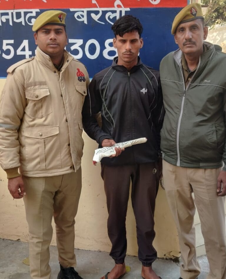उत्तर प्रदेश बरेली : दरअसल जनपद में थाना फरीदपुर क्षेत्र के ग्राम नवादा विल्सण्डी में रंजिशन एलएलवी छात्र को दिन दहाड़े अबैध तमँचे से गोली मार कर हत्या करने के मुख्य हमलावर को थाना पुलिस ने अबैध तमँचे समेत गिरफ्तार कर जेल भेज दिया है अन्य की तलाश की जा रही है।
