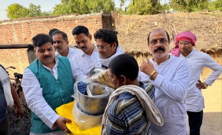 उन्नाव। बीघापुर ब्लॉक क्षेत्र के जयराजमऊ और सिकंदरपुर कर्ण के गांव गणेशखेड़ा-सातन में हुए अग्निकांड के बाद पीड़ित परिवारों को राहत सामग्री पहुंचाई गई। आग की घटना में कई घर पूरी तरह जल गए थे, जिससे परिवारों के सामने खाने और रहने तक का संकट खड़ा हो गया था। घटना की सूचना मिलने पर पूर्व सांसद अन्नू टंडन की ओर से राहत सामग्री भिजवाई गई। इसमें कपड़े, बर्तन, राशन, तिरपाल समेत दैनिक उपयोग की जरूरी वस्तुएं शामिल रहीं। मौके पर पहुंचे सपा नेता अंकित सिंह परिहार ने पीड़ित परिवारों के बीच राहत सामग्री का वितरण किया। इस दौरान उन्होंने प्रभावित लोगों से बातचीत कर उनकी समस्याएं भी सुनीं।