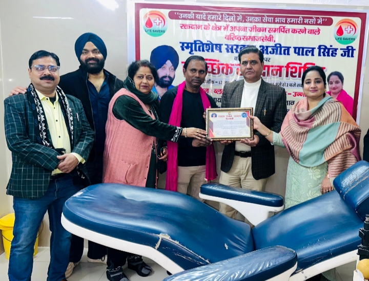 उन्नाव। लाइफ सेवर्स संस्था की ओर से जिला अस्पताल स्थित ब्लड बैंक में स्वर्गीय सरदार अजीत पाल सिंह की पुण्यतिथि पर स्वैच्छिक रक्तदान शिविर का आयोजन किया गया। शिविर में युवाओं और समाजसेवियों ने बढ़-चढ़कर हिस्सा लिया और रक्तदान कर उन्हें श्रद्धांजलि अर्पित की। कार्यक्रम की शुरुआत वरिष्ठ चिकित्सक डॉ. संजय मिश्रा और समाजसेविका निम्मी अरोड़ा ने संयुक्त रूप से फीता काटकर किया। इसके बाद उपस्थित लोगों ने स्वर्गीय अजीत पाल सिंह के चित्र पर पुष्प अर्पित कर भावभीनी श्रद्धांजलि दी।
