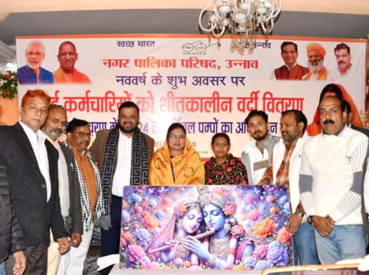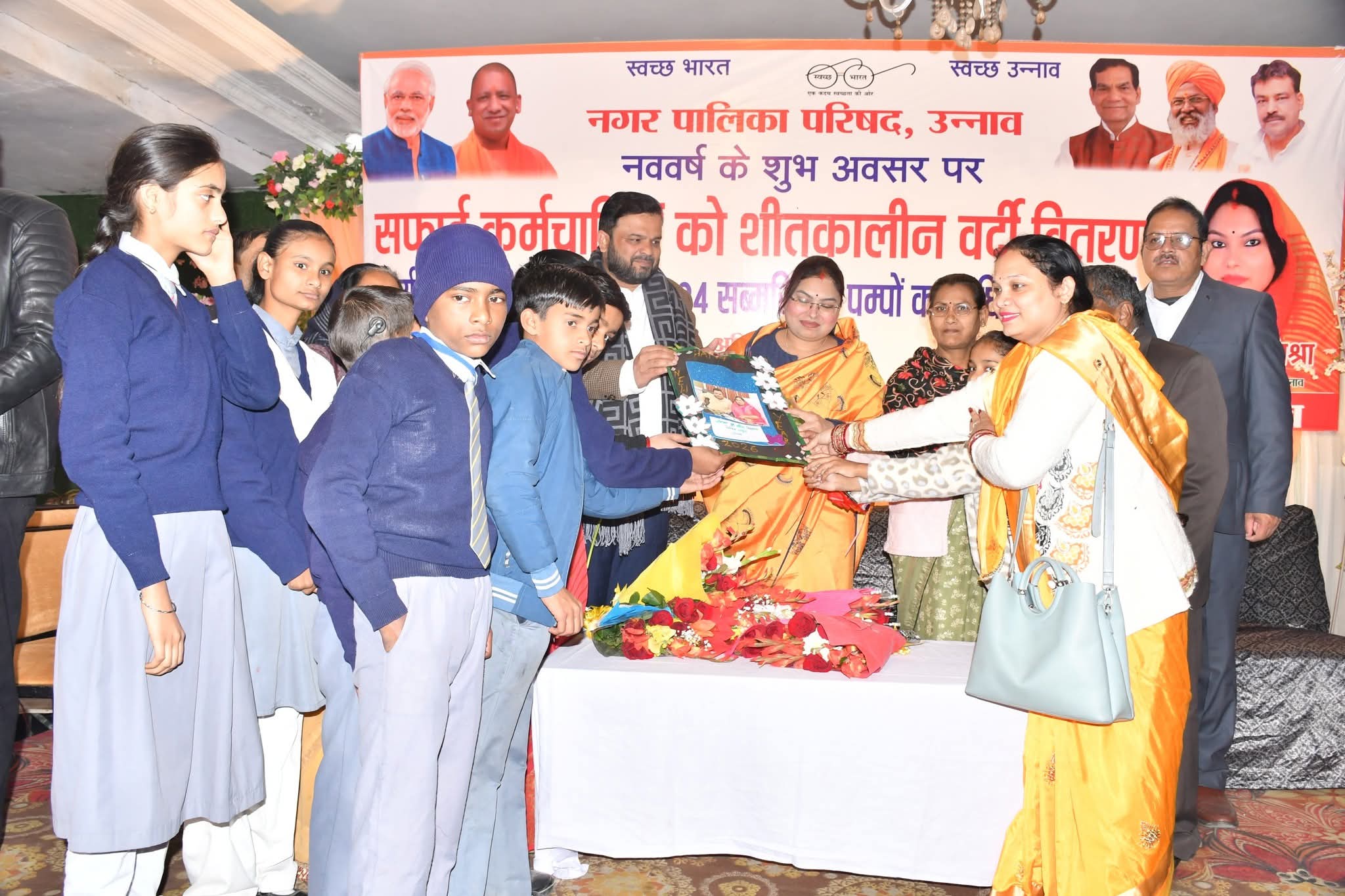 उन्नाव। नए साल की शुरुआत उन्नाव नगर पालिका परिषद ने सेवा, सम्मान और मानवीय सरोकार के संदेश के साथ की। नगर पालिका अध्यक्ष श्वेता मिश्रा ने नववर्ष के अवसर पर दो दर्जन से अधिक सफाई मित्रों को शीतकालीन वर्दी बांटी गई। इस पहल का उद्देश्य कड़ाके की ठंड में सफाई कर्मियों को राहत देना और शहर की स्वच्छता व्यवस्था को और मजबूत करना रहा। पार्क व्यू पैलेस में आयोजित कार्यक्रम में सफाई कर्मियों को गर्म जैकेट, स्वेटर सहित अन्य आवश्यक शीतकालीन सामग्री दी गई। ठंड के मौसम में यह वर्दी उनके लिए खास सहूलियत मानी जा रही है, क्योंकि सफाई मित्र सुबह तड़के से लेकर देर शाम तक शहर की सफाई में जुटे रहते हैं।