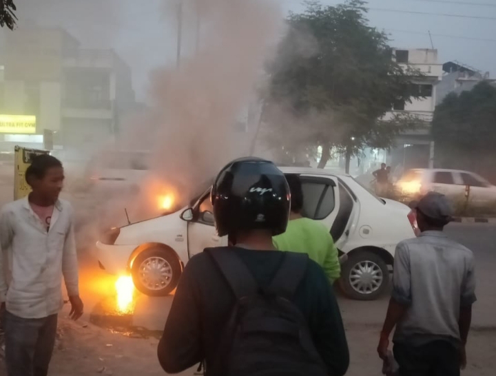 उन्नाव में बड़ा हादसा टला : चलती कार में अचानक लगी आग